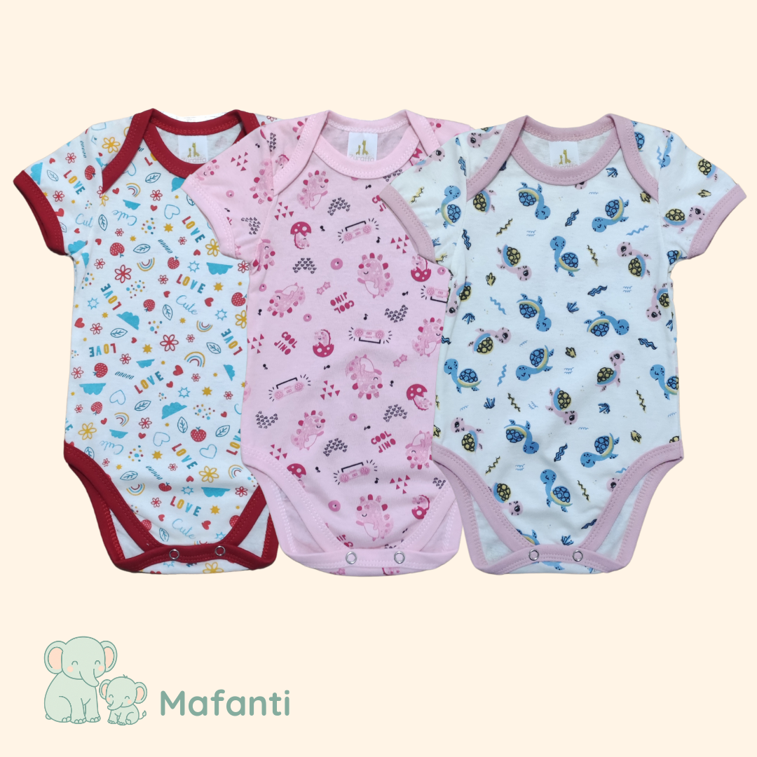 KIT 3 BODYS MANGA CURTA MALHA ESTAMPADA FEMININO - 203F