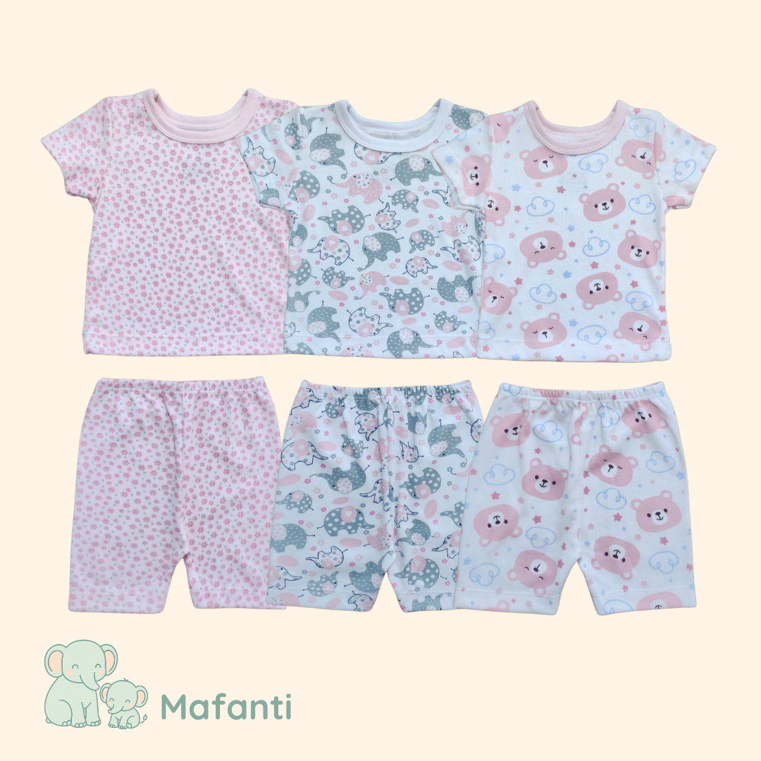 Contém: 6 peças (sendo 3 camisetas e 3 shorts)