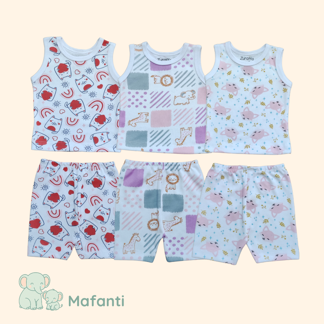 Contém: 6 peças (sendo 3 regatas e 3 shorts)