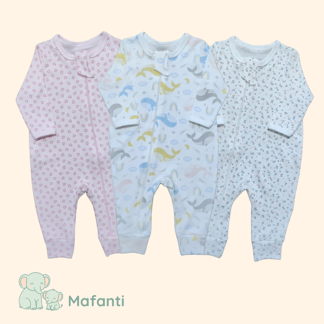 O kit é composto por 3 unidades em estampas variadas, trazendo versatilidade e praticidade para o enxoval. As estampas podem ser iguais ou diferentes das apresentadas na foto, sempre dentro da proposta de estampas fofas, delicadas e divertidas.